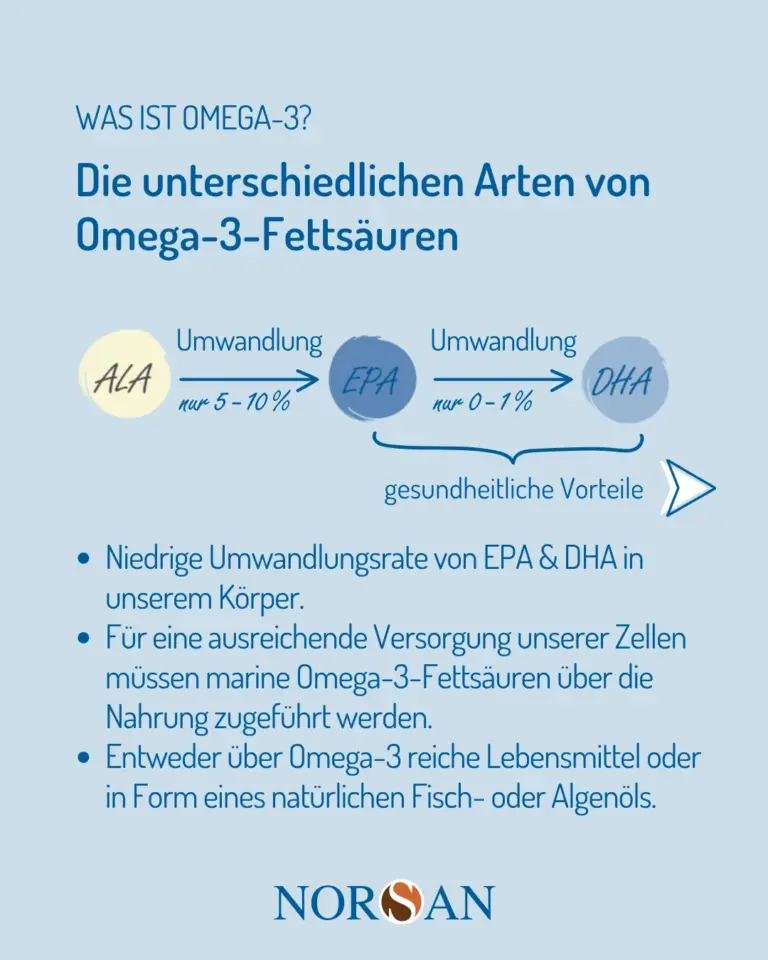 Das Problem: Ihr Körper muss ALA erst in die aktiven Formen EPA und DHA umwandeln.